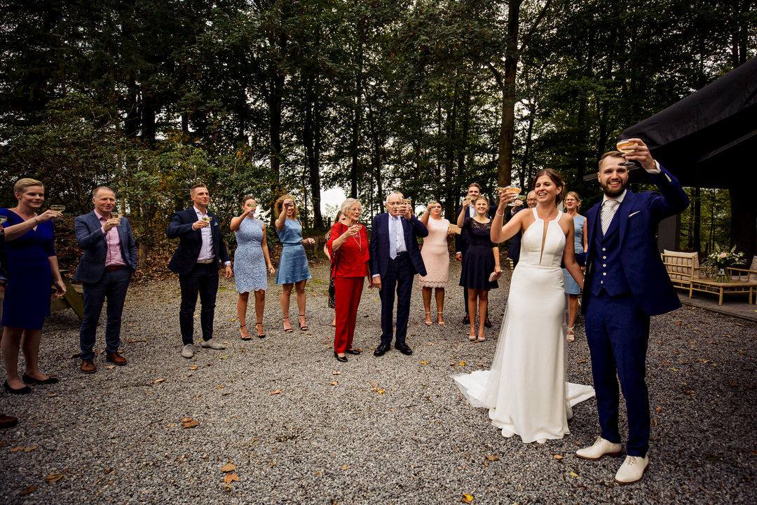 Hoe tof is het dan, dat je alsnog je bruiloft kunt vieren met alle lieve mensen om je heen. En dat je ook in deze tijd van Corona, alsnog je bruiloft met 1,5 meter afstand kunt houden. Natuurlijk waren er wel wat maatregelen, maar ook daar wist dit koppel creatief mee om te gaan. Omdat het super mooie weer was, konden zij heerlijk buiten trouwen bij trouwlocatie Kabels. Zo ook hun toast en BBQ werd buiten bij deze toffe trouwlocatie gehouden. Wat een heerlijke dag!