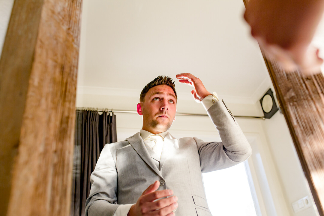 De dag van de trouwfotografie begon vroeg, met de voorbereidingen bij de bruidegom René en bij Ferrisa. Ferrisa wilde haar aanstaande verrassen op haar eigen manier, en dat deed ze. Wat heerlijk! Nadat ze elkaar hadden bewonderd, was het tijd voor de fotoshoot. Dit deden wij op de mooie zandverstuiving van Kootwijkerzand.